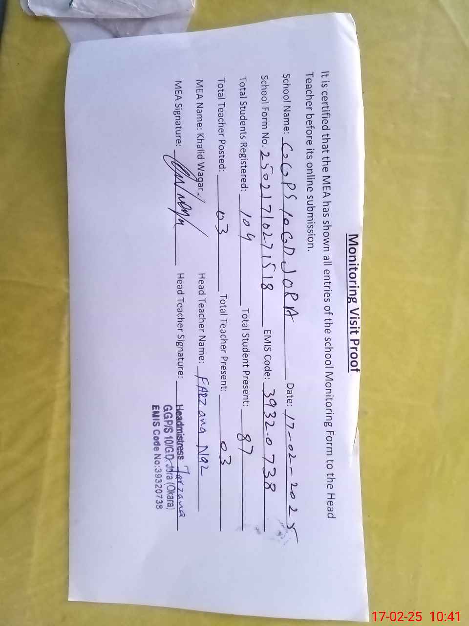 | EMIS Code: 39320738 | Name of School: GGPS 10/G.D JORA | |||