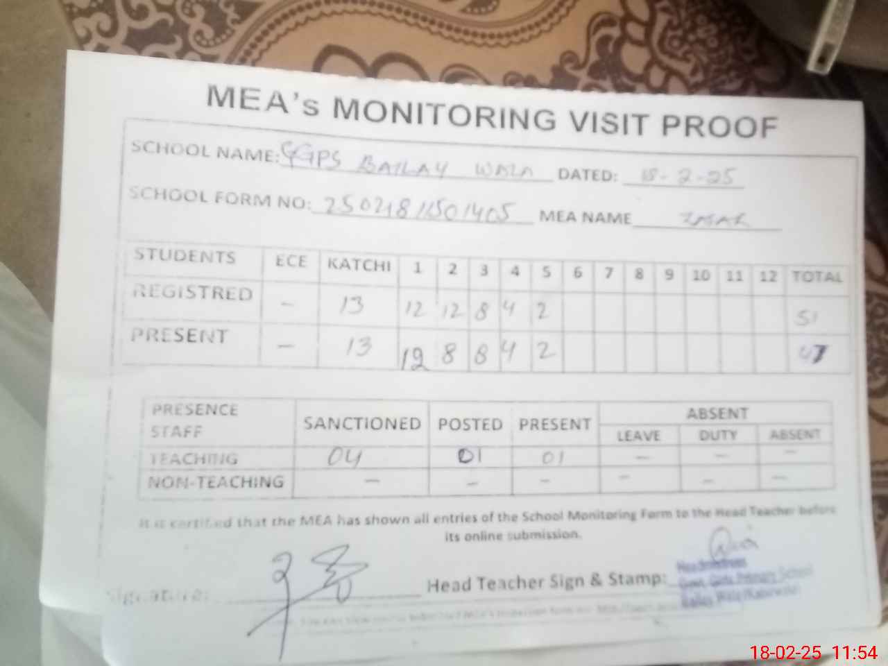 | EMIS Code: 36410603 | Name of School: GGPS BAILAY WALA | |||