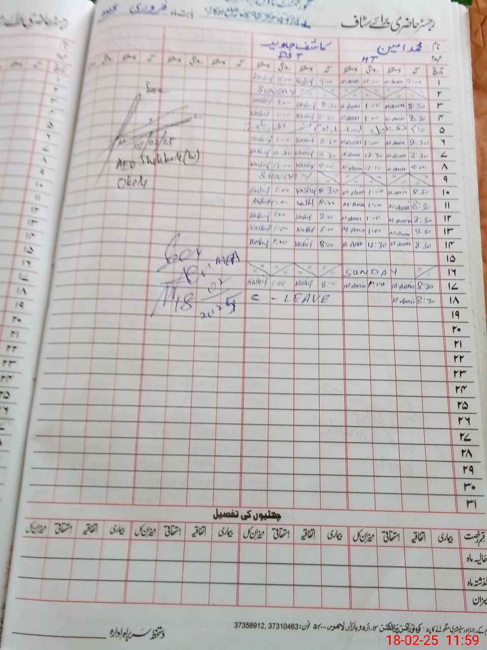 | CNIC | Full Name | Designation | R/C | Absence During Last Calender Month |