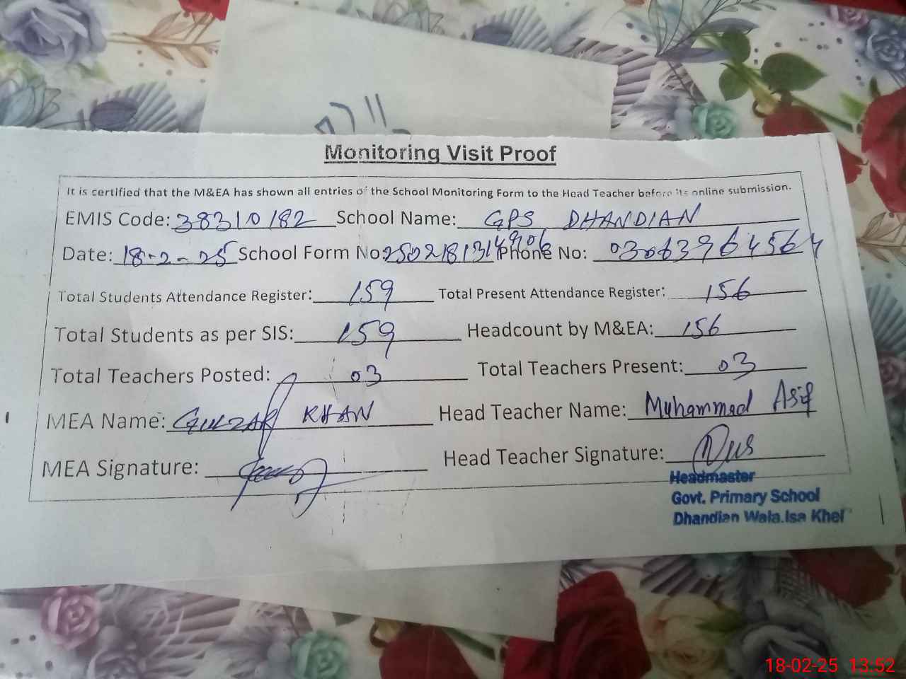 | EMIS Code: 38310182 | Name of School: GPS DHANDIAN WALA | |||