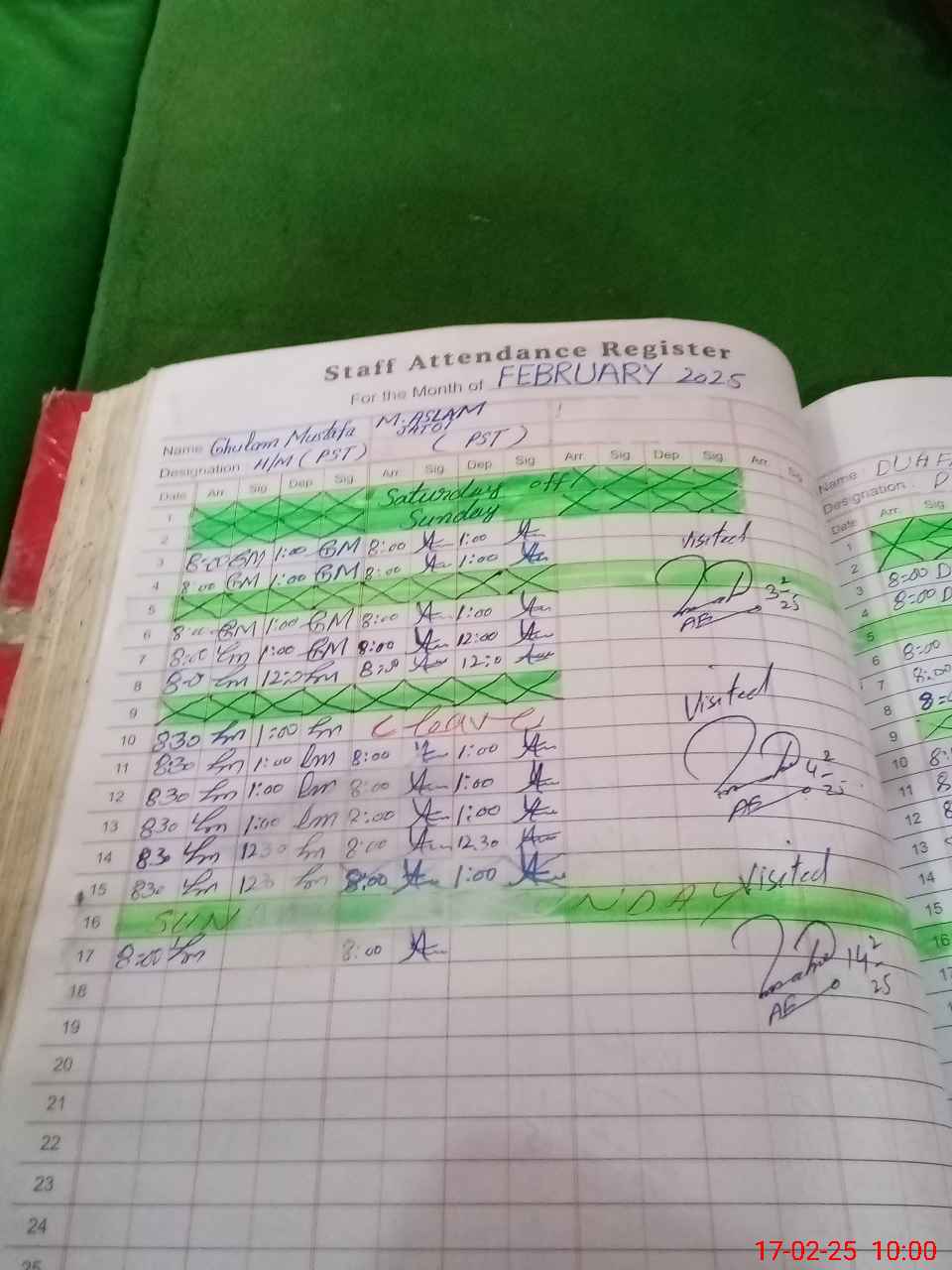 | Leave | Duty | Absent | Maternity | Medical | Ex- Pak |