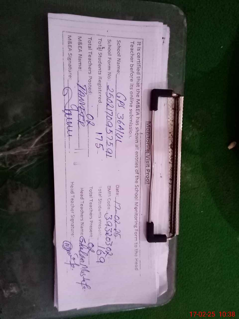 | Attendance Register | Head Teacher | MEA with School | Visit Proof |