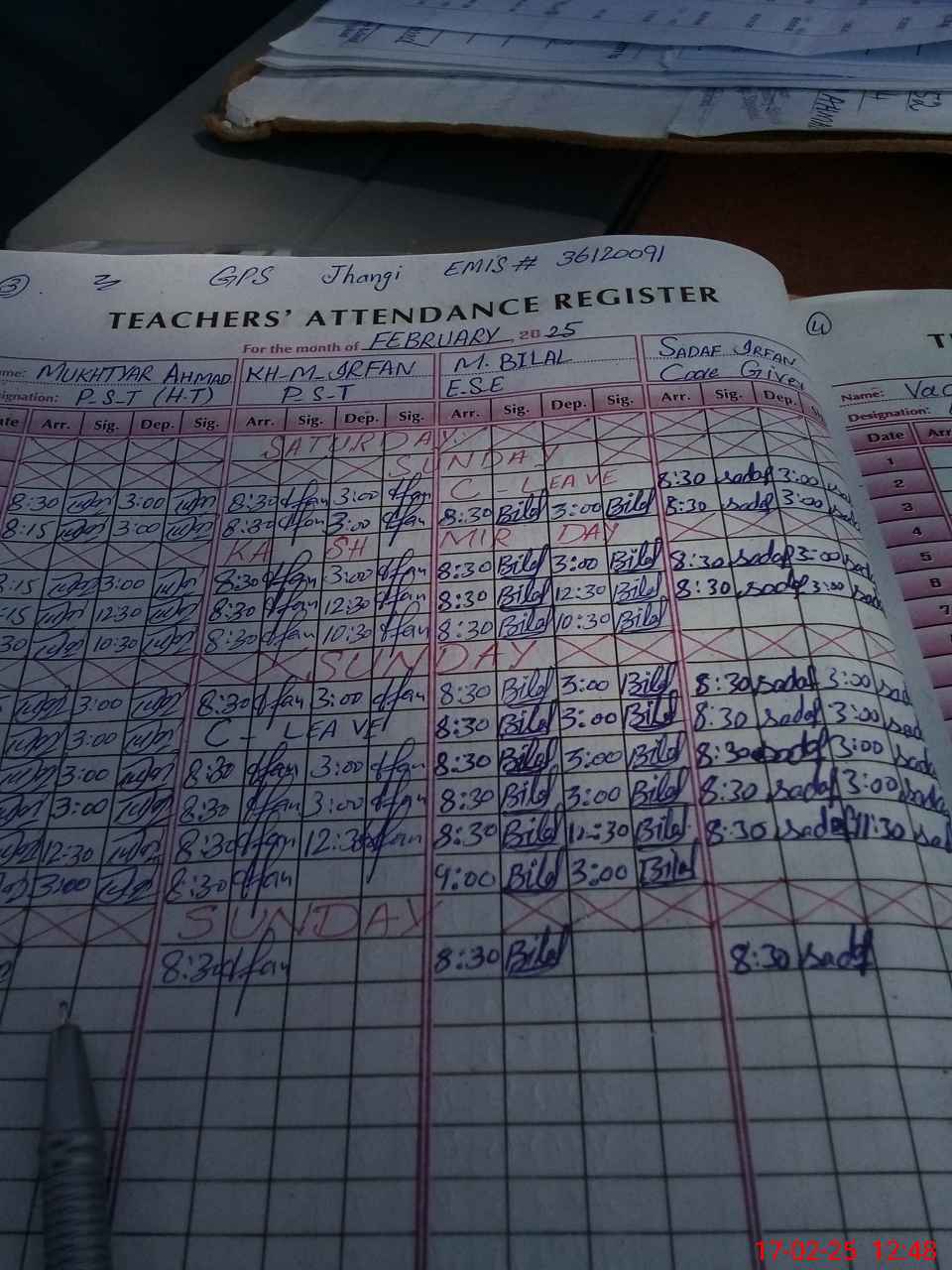 | CNIC | Full Name | Designation | R/C | Absence During Last Calender Month |