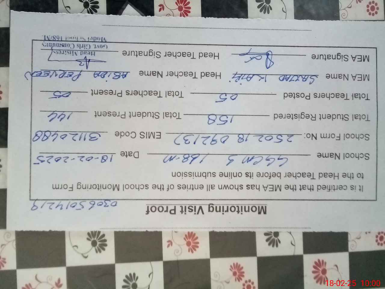 | Certified that this School was Inspected by the Undersigned MEA/DMO Today and the Information Stated Above is as Per Record. | |||||