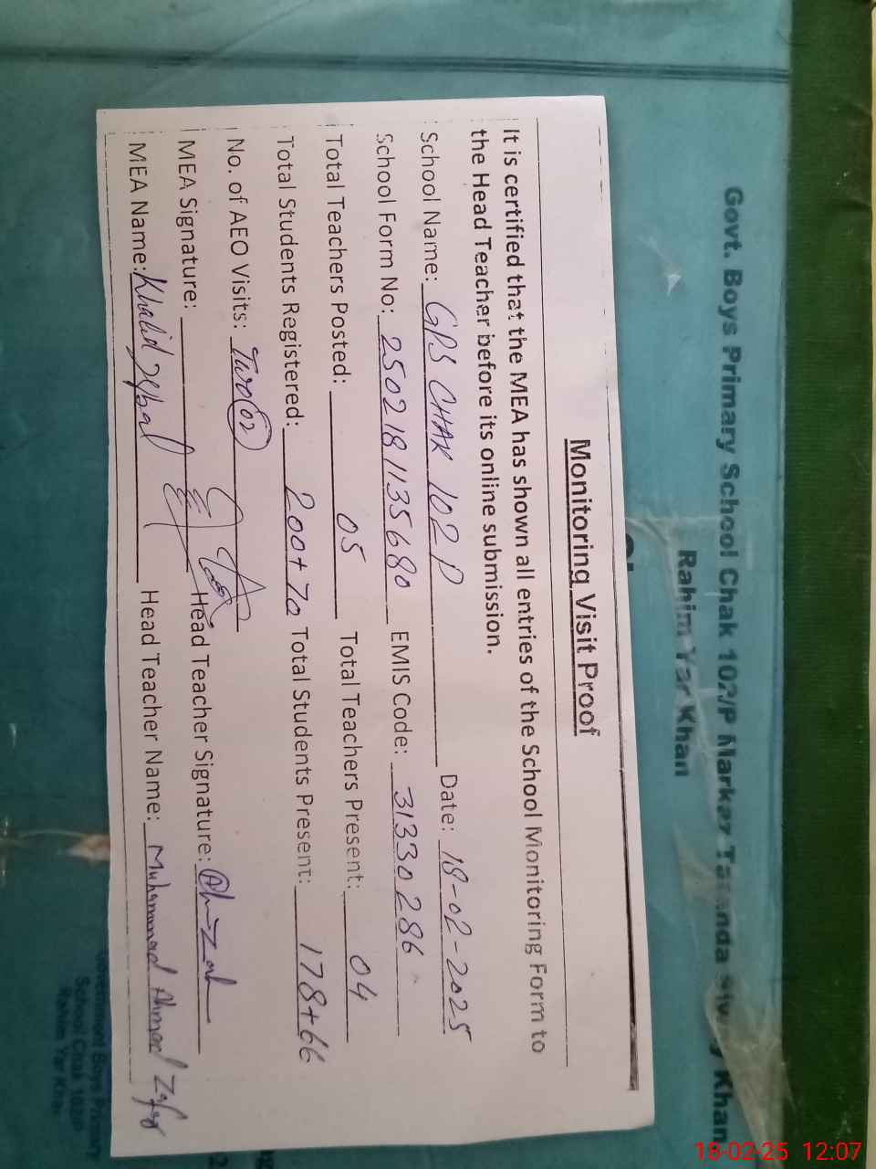 | EMIS Code: 31330286 | Name of School: GPS CHAK 102/P | |||