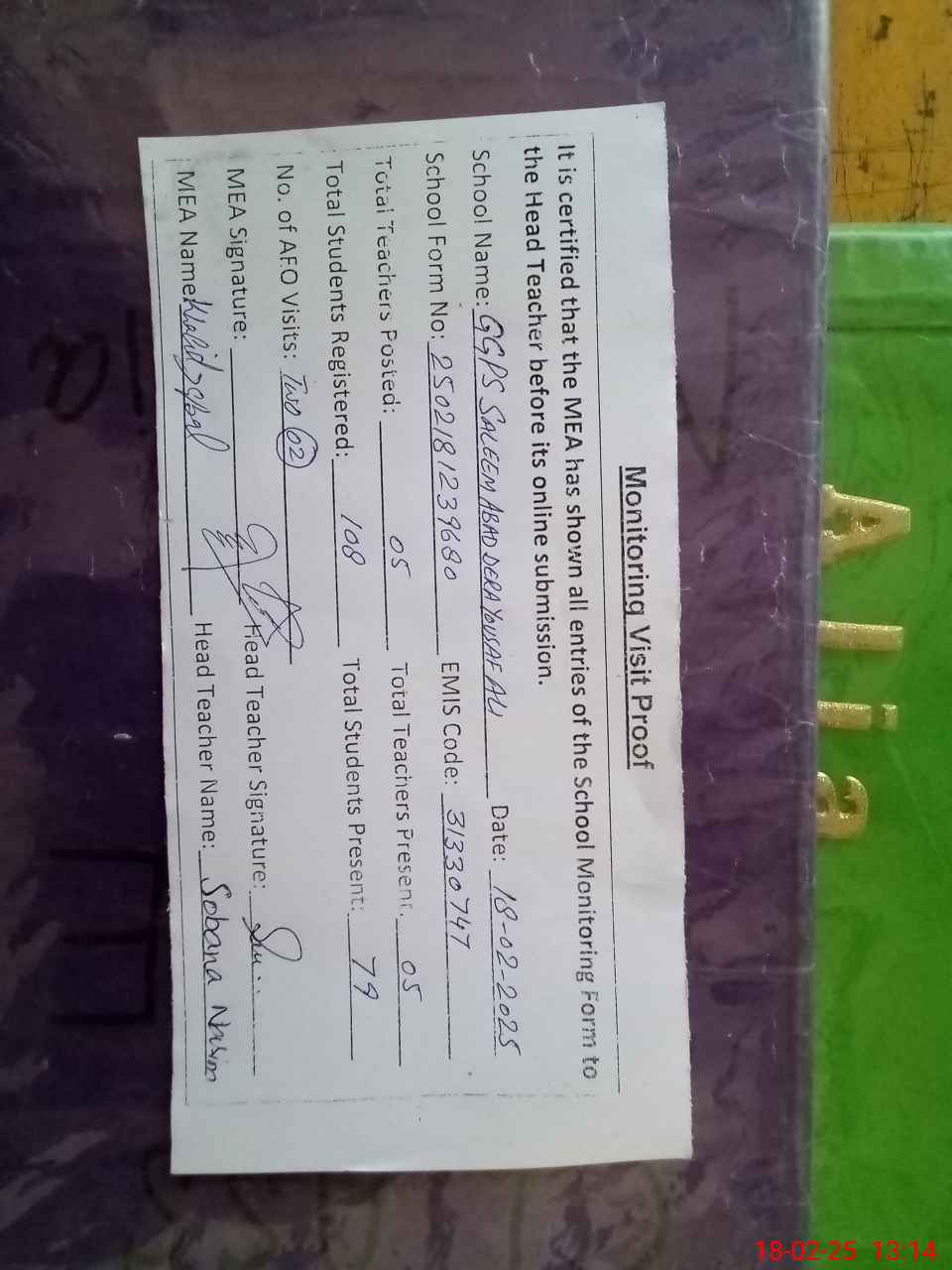 | EMIS Code: 31330747 | Name of School: GGPS SALEEM ABAD (Dera Mian Yousaf Ali 84/p) | |||