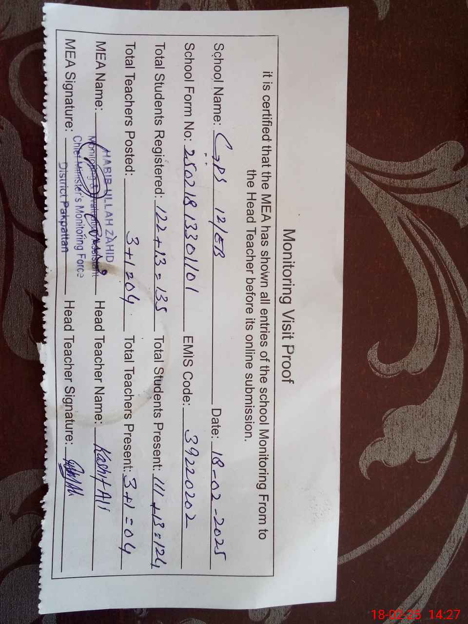 | EMIS Code: 39220202 | Name of School: GPS 12 EB P/O 10/E.B ARIF WALA | |||