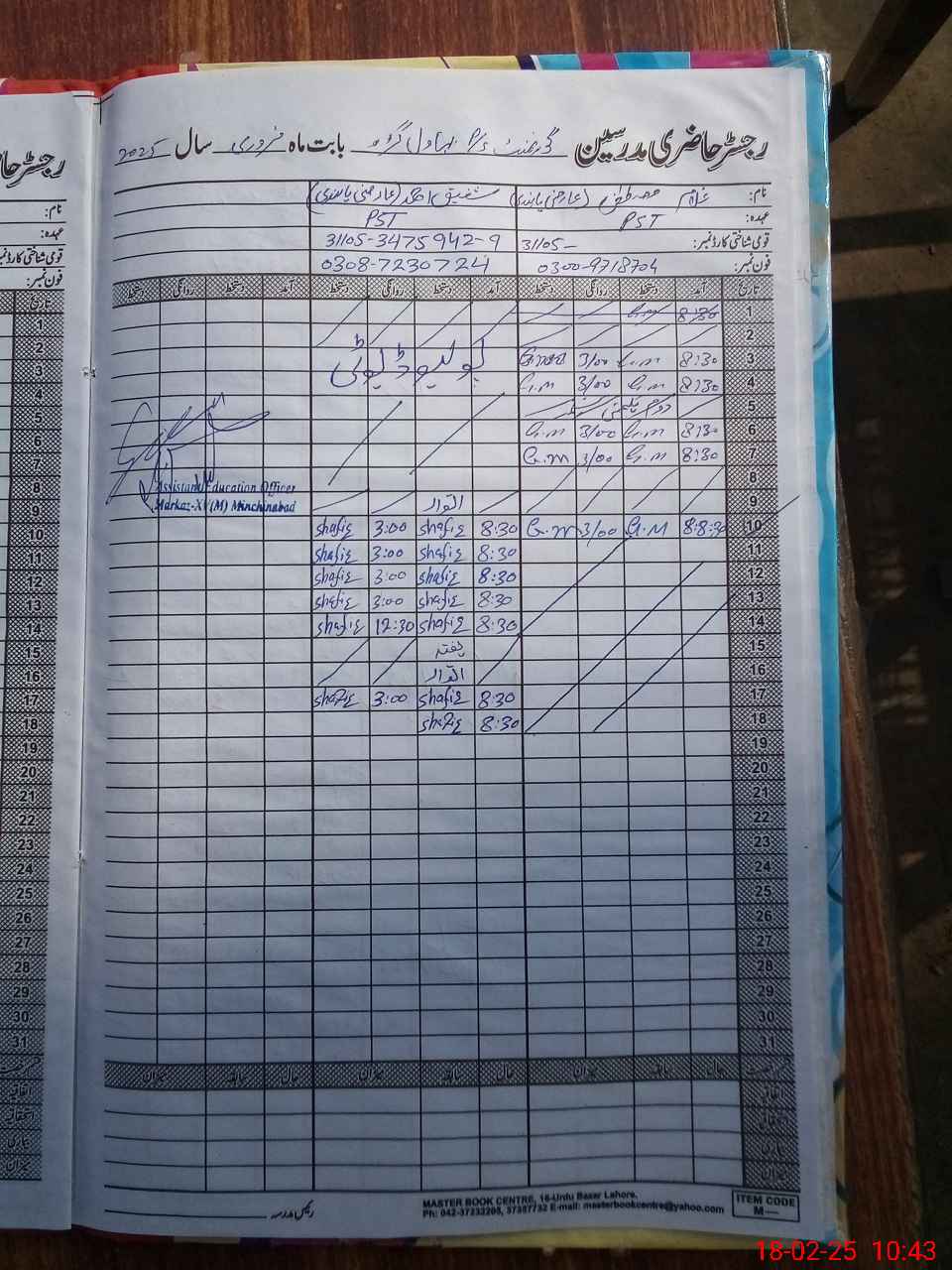 | Name: Sh**** Ah**** Designation: (School Headmaster's/Headmistress's) PST Phone/Cell Number: 03**** |