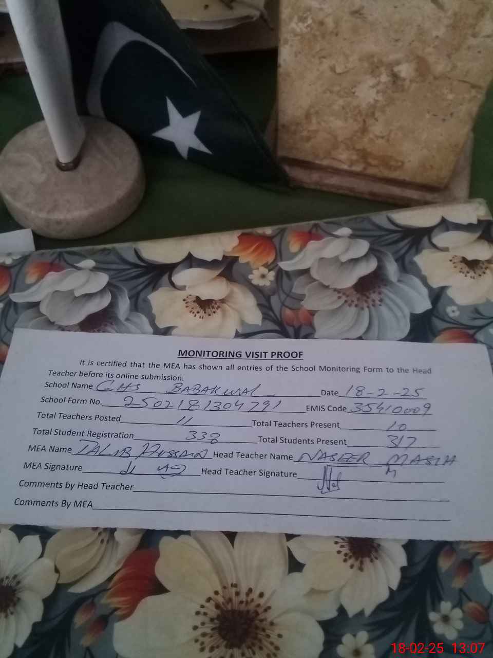 | EMIS Code: 35410009 | Name of School: GHS BABAKWAL | |||