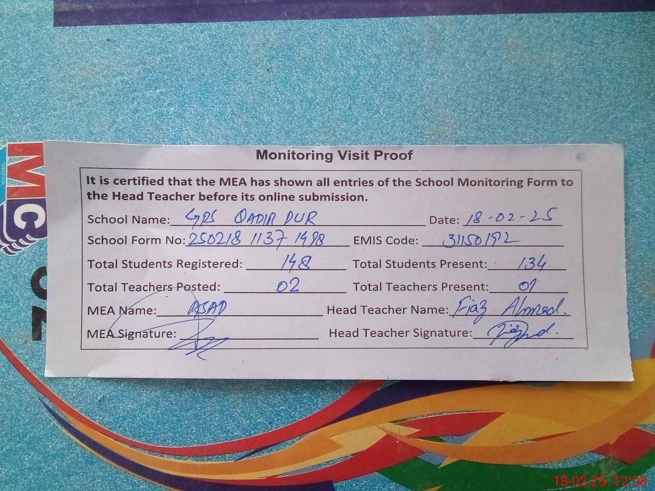 | EMIS Code: 31150192 | Name of School: GPS QADIR PUR SETHAN | |||