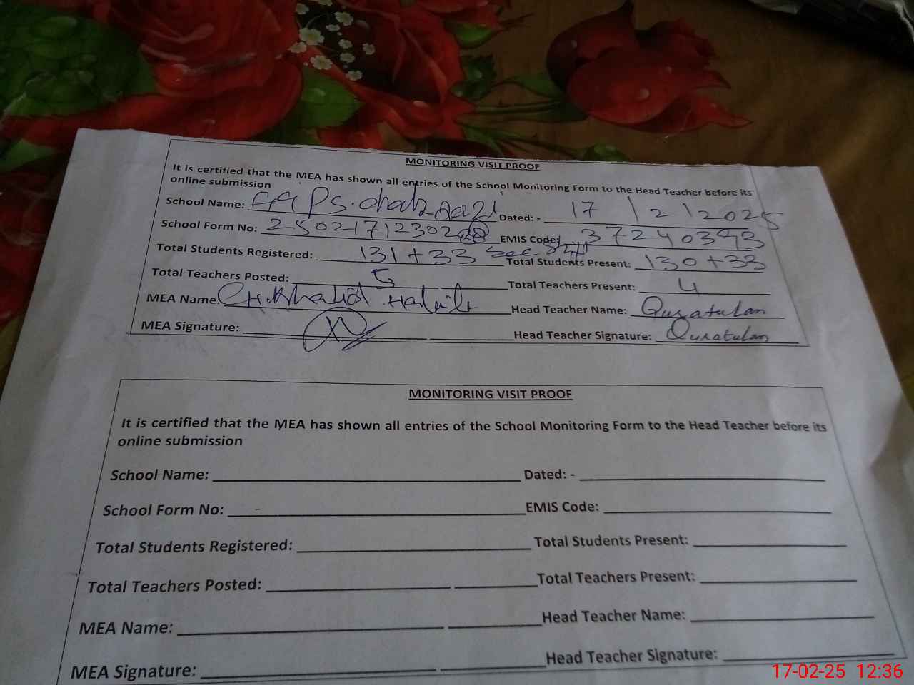 | EMIS Code: 37240393 | Name of School: GGPS CHAK QAZI | |||