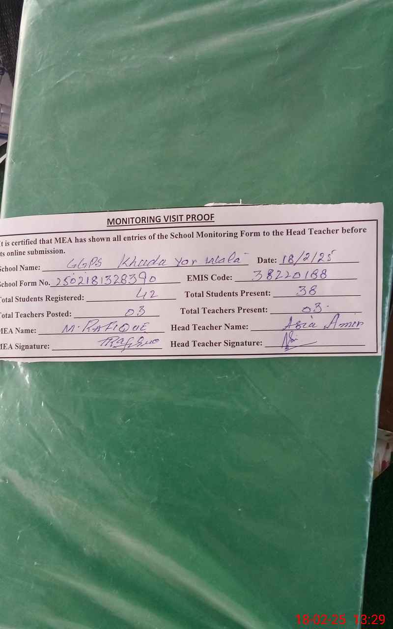 | EMIS Code: 38220188 | Name of School: GGPS KHUDA YAR WALA | |||