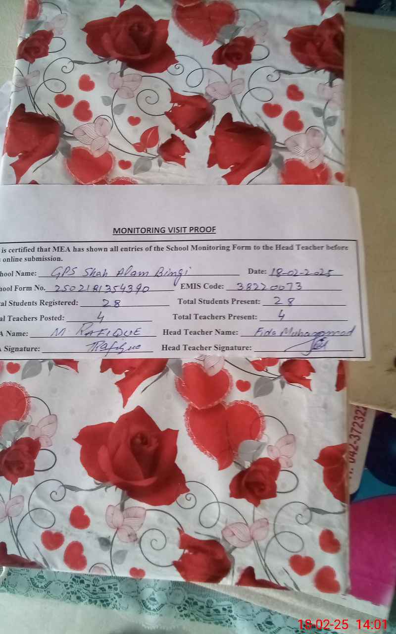 | EMIS Code: 38220073 | Name of School: GPS SHAH ALAM BINGI | |||