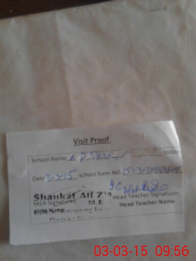 | Attendance Register | Head Teacher | MEA with School | Visit Proof |
