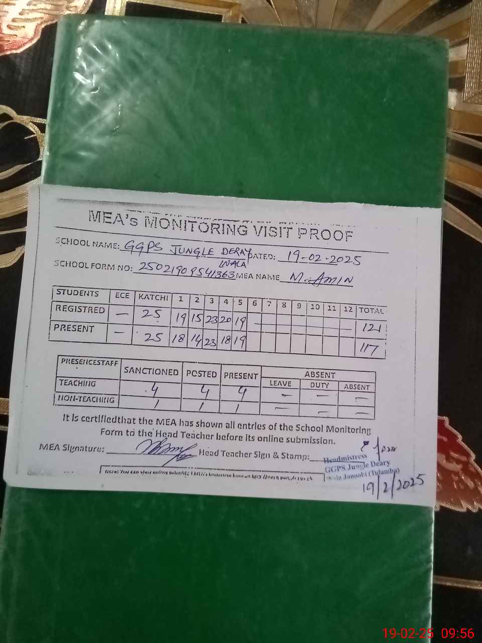 | EMIS Code: 36430355 | Name of School: GGPS JUNGLE DERAY WALA, TULAMBA | |||