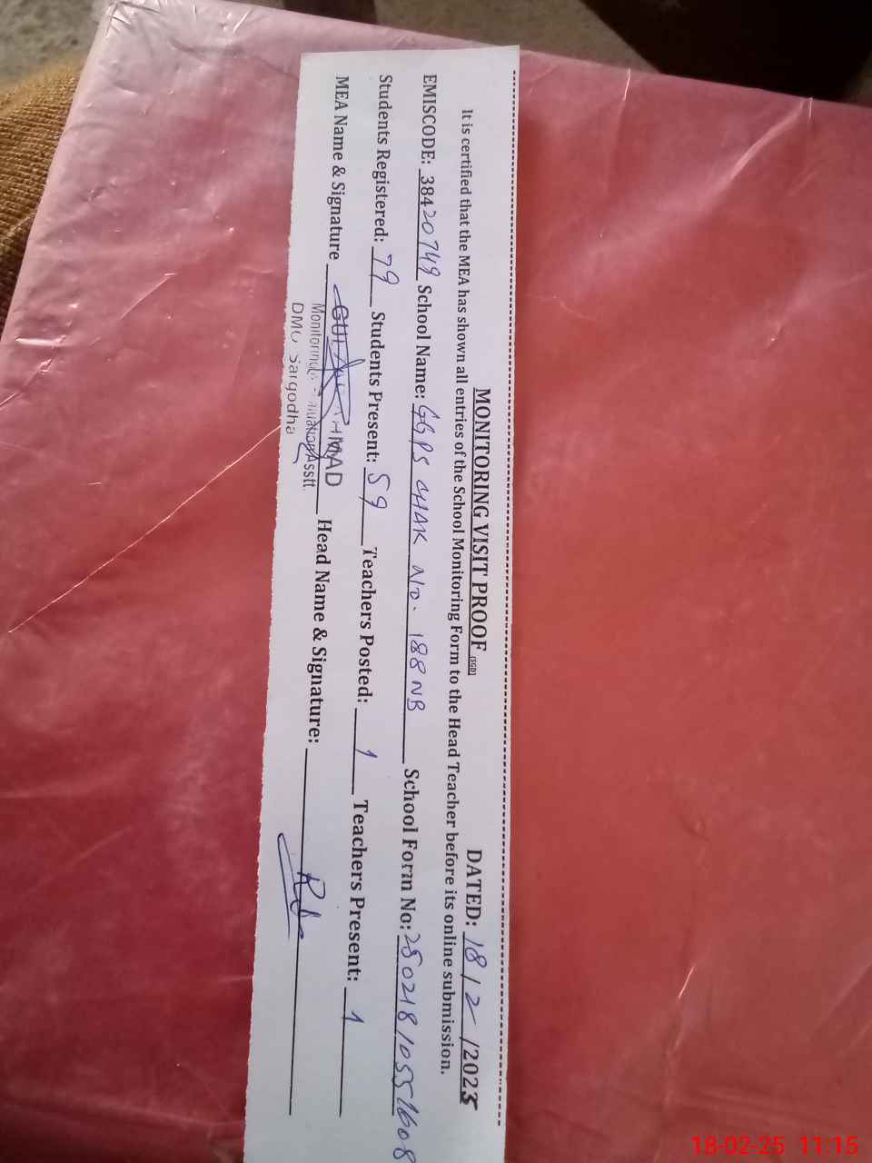 | Certified that this School was Inspected by the Undersigned MEA/DMO Today and the Information Stated Above is as Per Record. | |||||