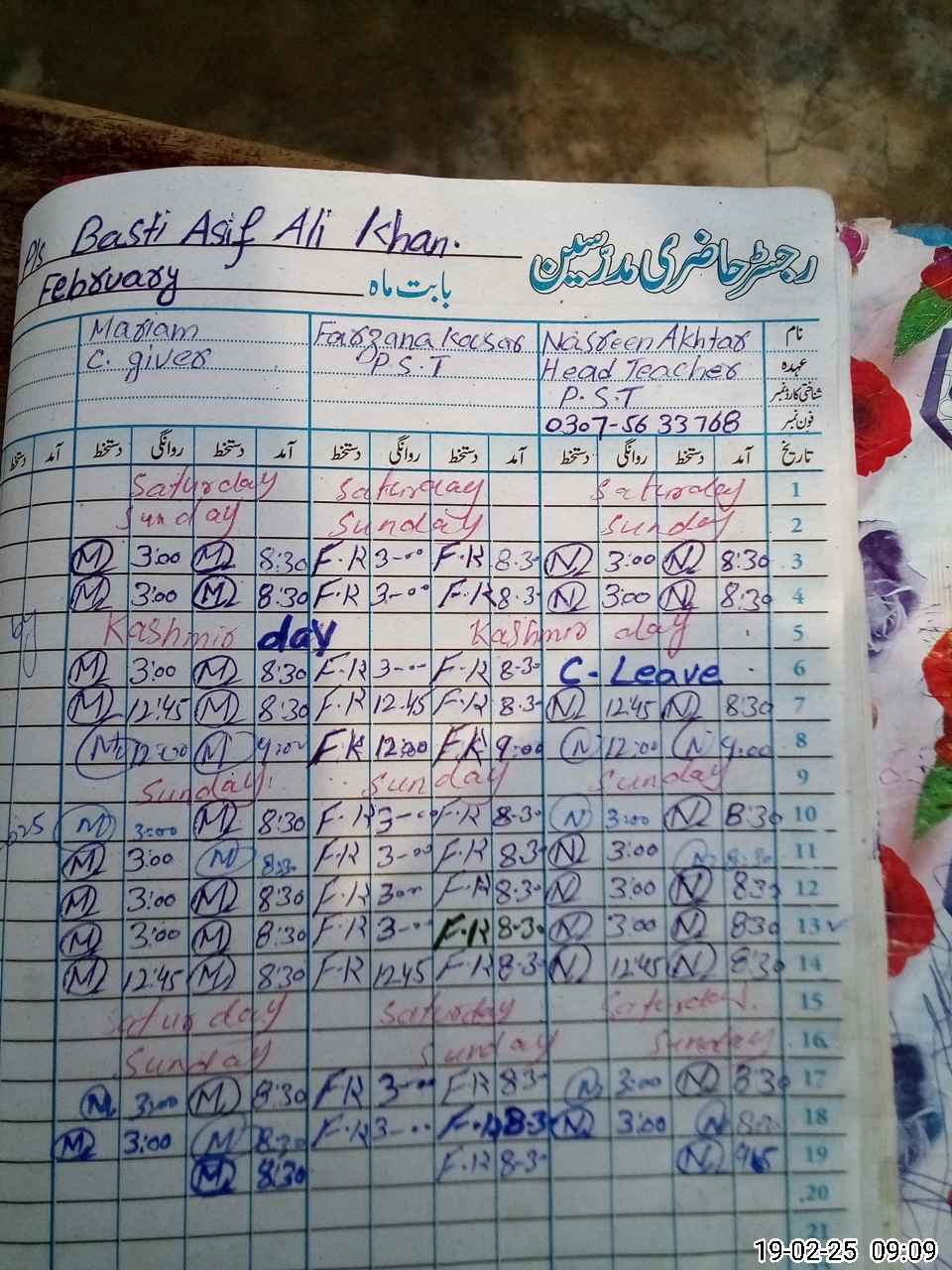 | Name: NA**** AK**** Designation: (School Headmaster's/Headmistress's) PST Phone/Cell Number: 03**** |