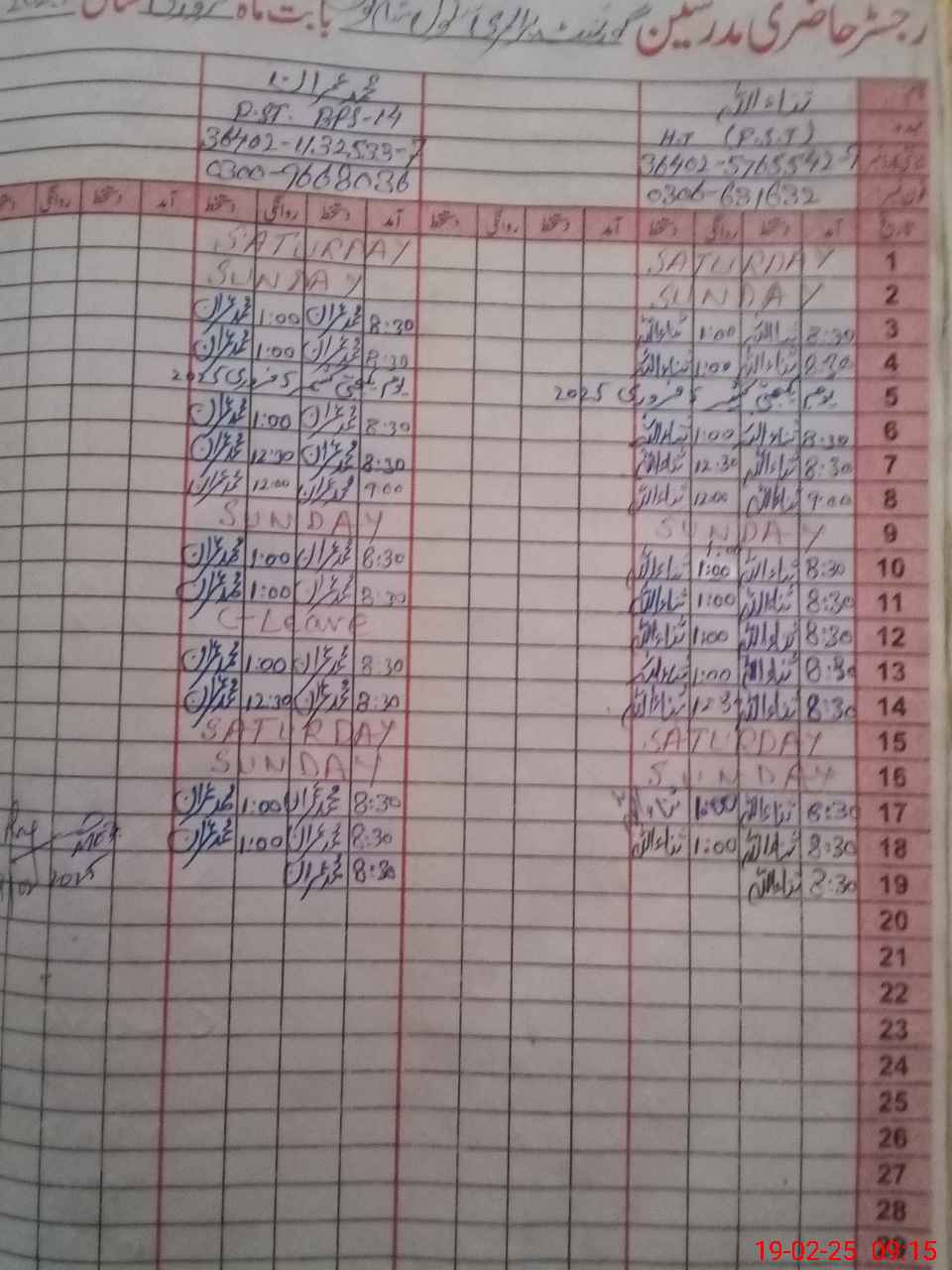 | CNIC | Full Name | Designation | R/C | Absence During Last Calender Month |