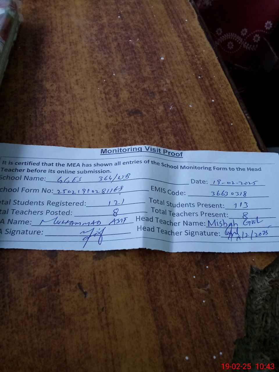 | Certified that this School was Inspected by the Undersigned MEA/DMO Today and the Information Stated Above is as Per Record. | |||||