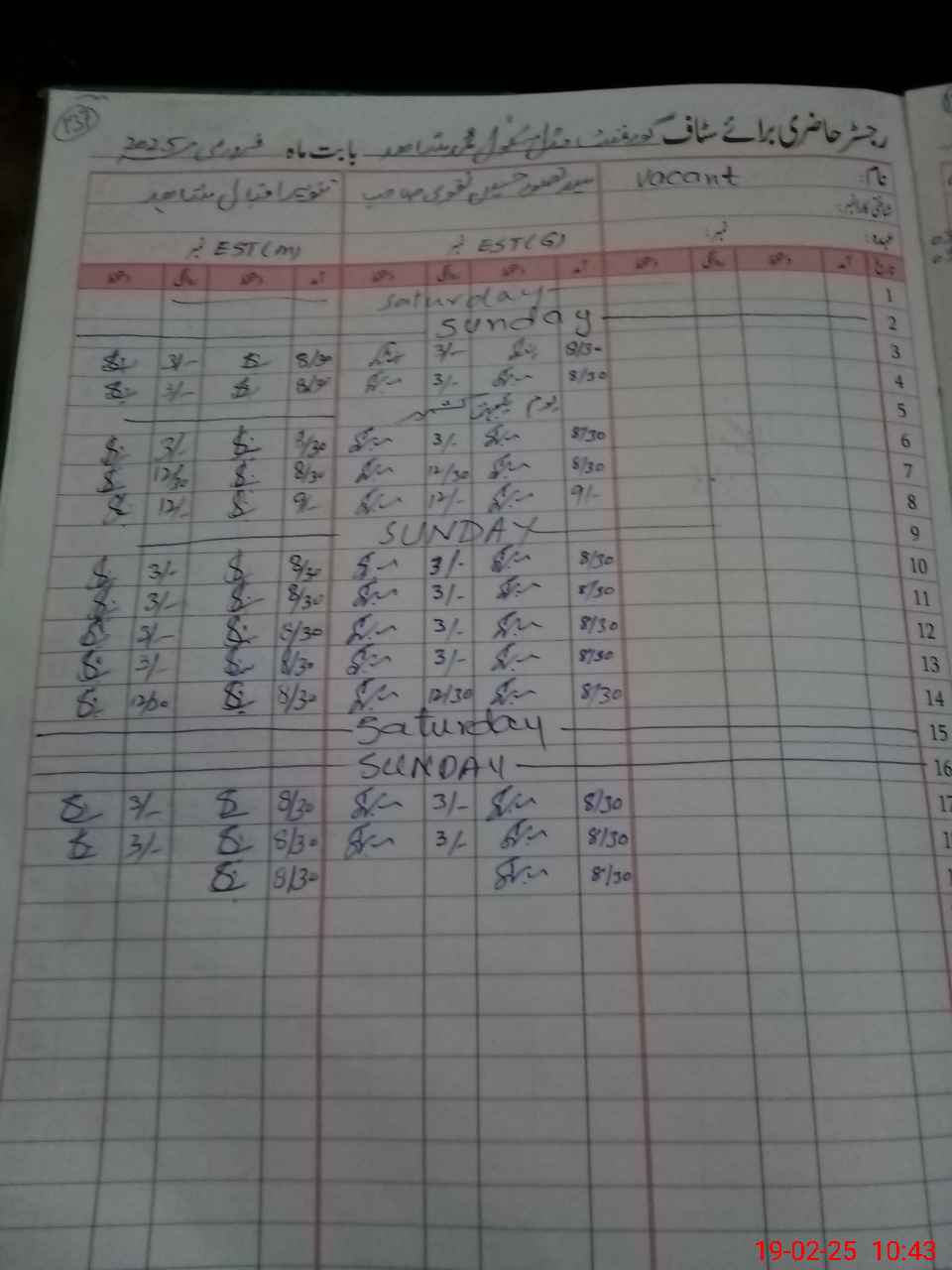 | Name: Ta**** sh**** Designation: (School Headmaster's/Headmistress's) ES.T.(Science) Phone/Cell Number: 03**** |