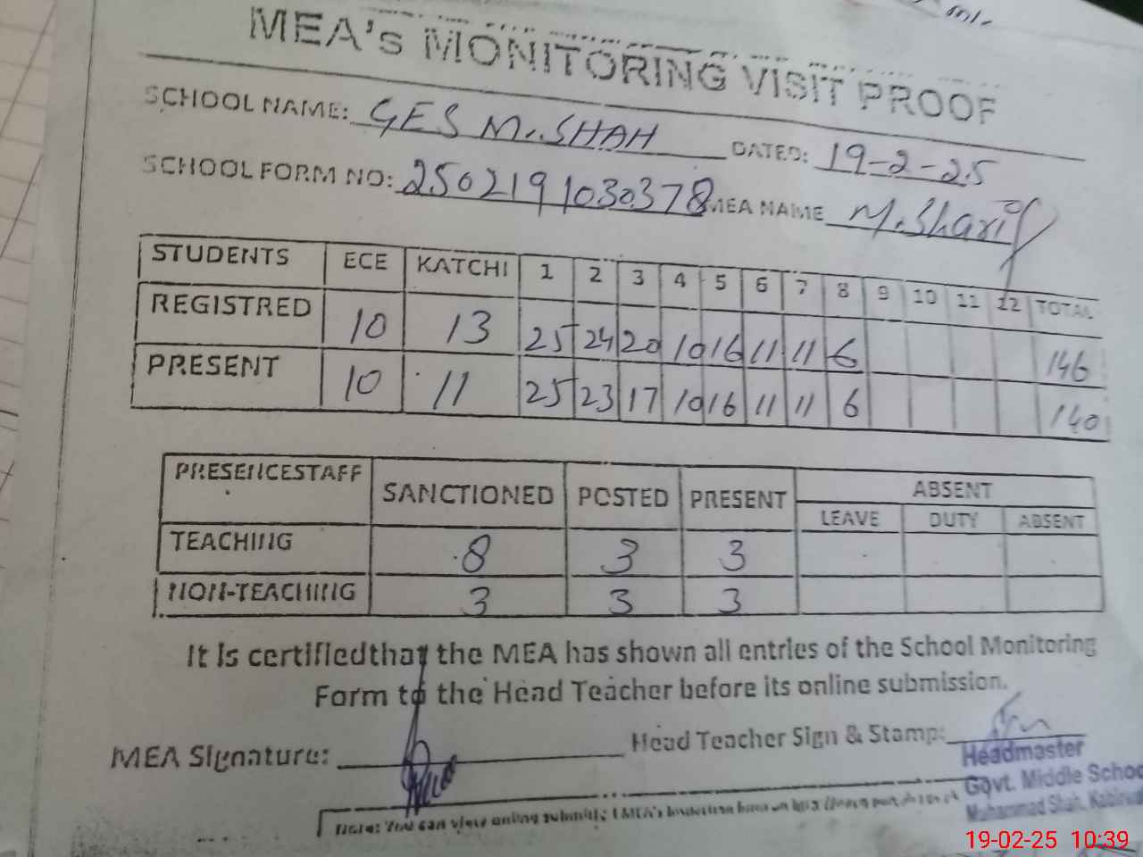 | EMIS Code: 36410058 | Name of School: GES MUHAMMAD SHAH, SARAI SIDHU | |||