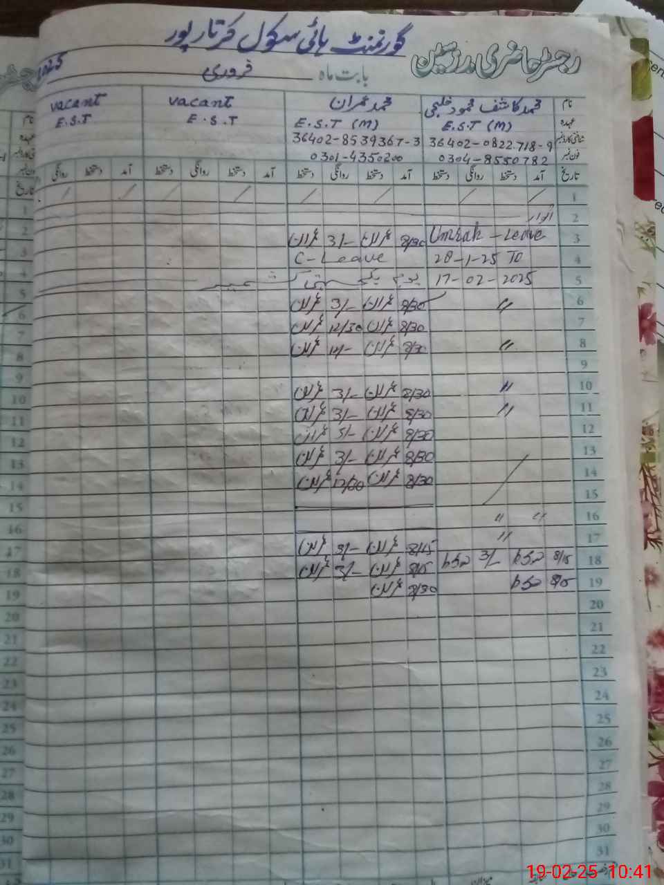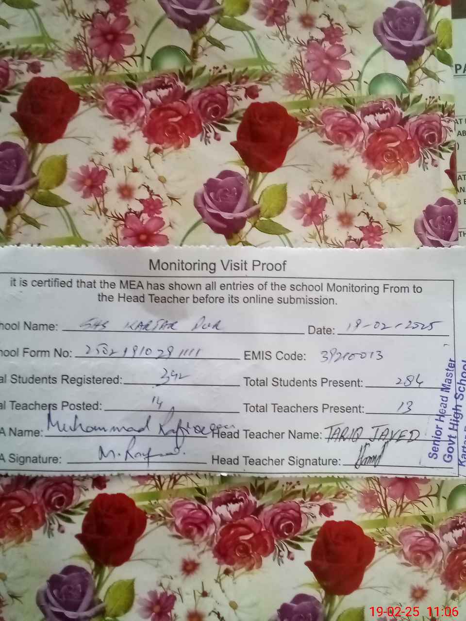 | EMIS Code: 39210013 | Name of School: GHS KARTAR PUR | |||