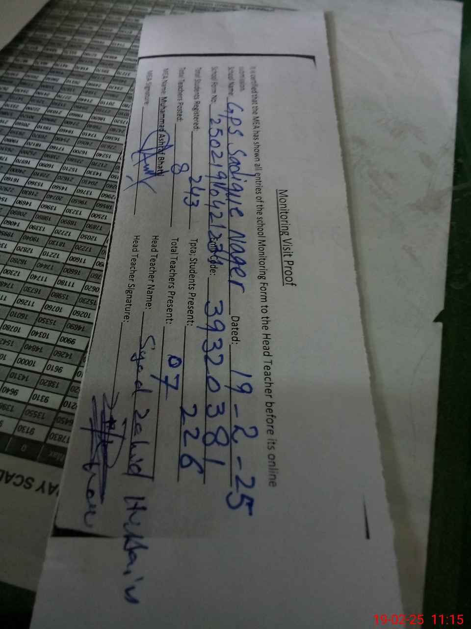 | Name: SY**** ZA**** HU**** SH**** Designation: (School Headmaster's/Headmistress's) PST Phone/Cell Number: 03**** |