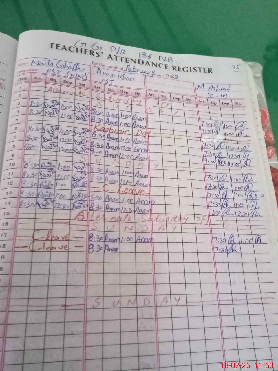 | Name: NA**** GH**** Designation: (School Headmaster's/Headmistress's) PST (SCI,MATH) Phone/Cell Number: 03**** |