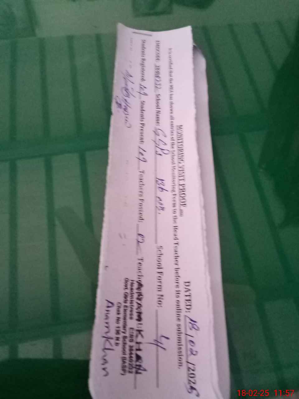 | Attendance Register | Head Teacher | MEA with School | Visit Proof |