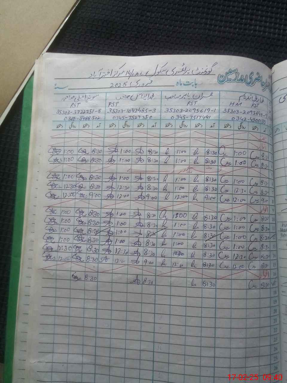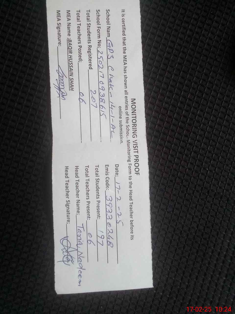| Name: TA**** NA**** Designation: (School Headmaster's/Headmistress's) PST Phone/Cell Number: 03**** |