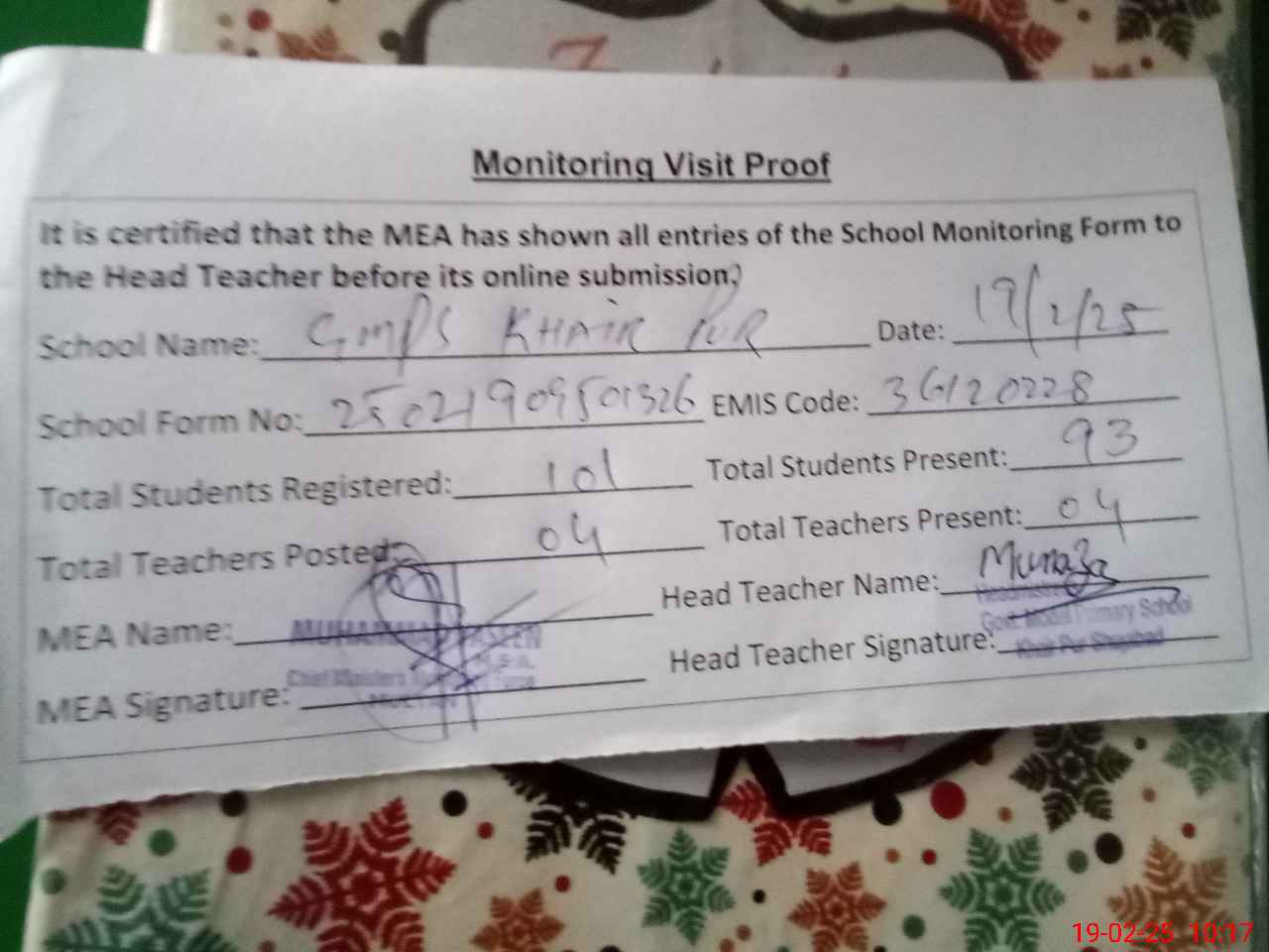 | EMIS Code: 36120228 | Name of School: GMPS KHAIR PUR SHUJABAD | |||