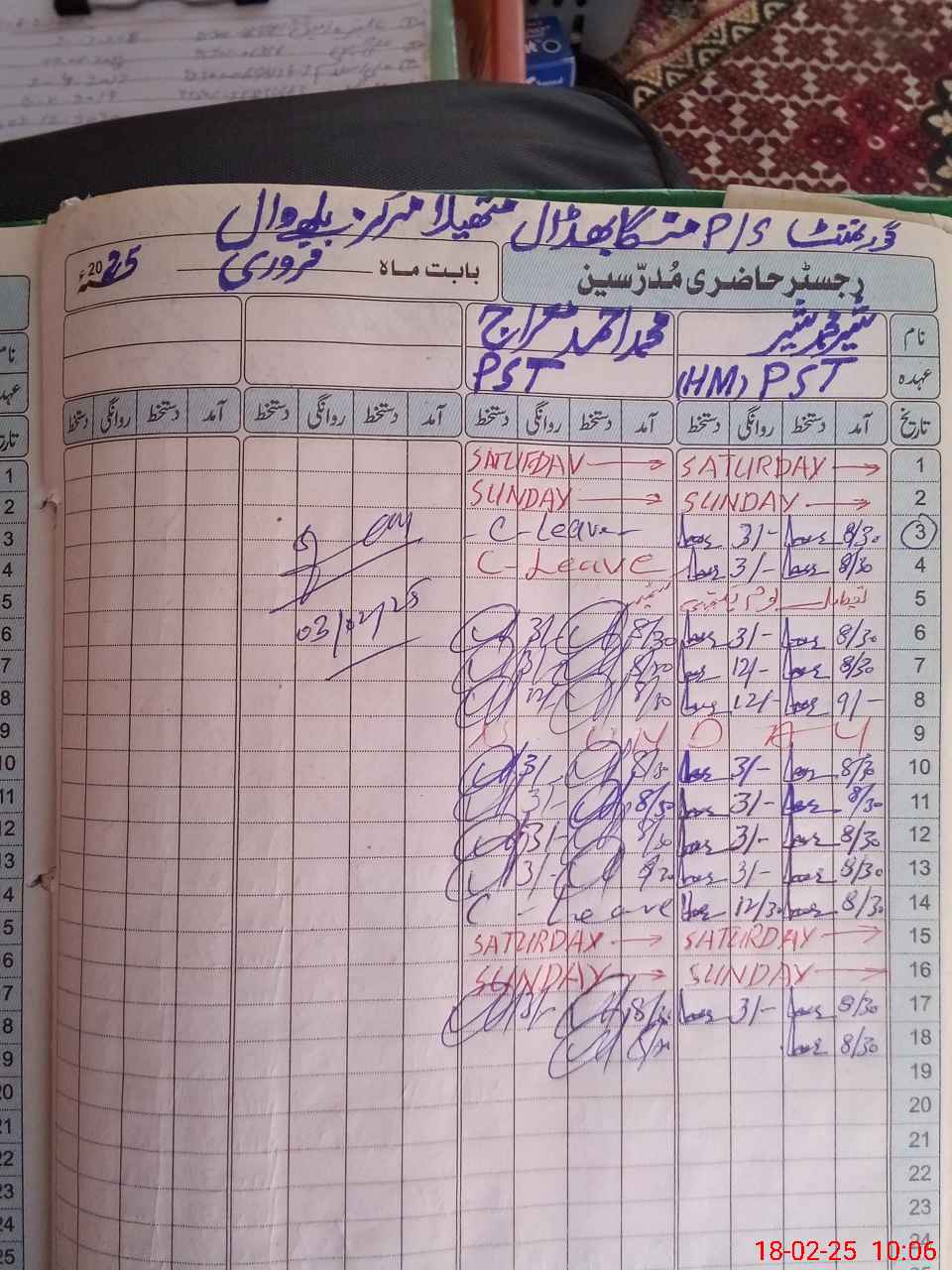 | Name: SH**** MU**** SH**** Designation: (School Headmaster's/Headmistress's) PST Phone/Cell Number: 03**** |