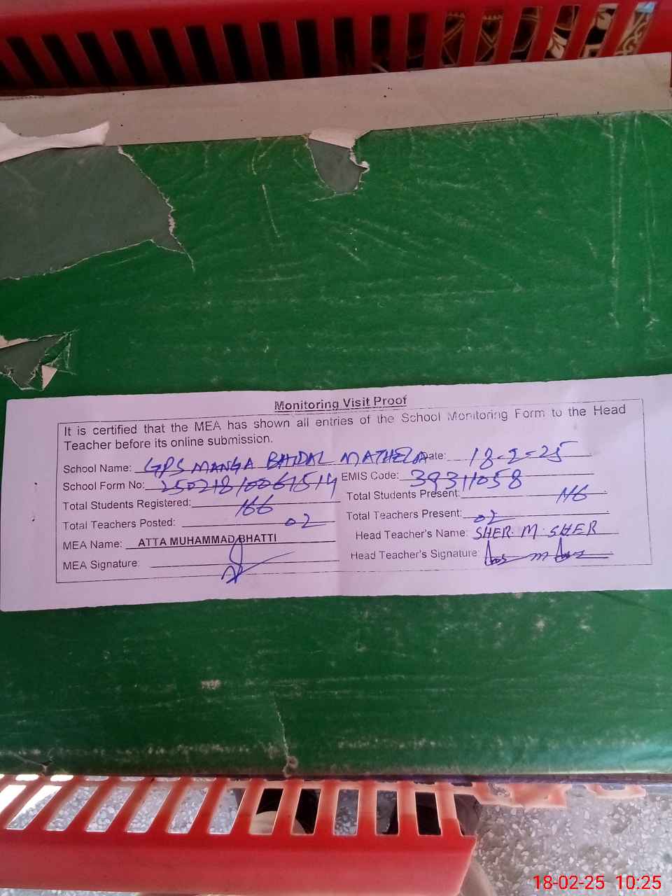 | EMIS Code: 39311058 | Name of School: GPS MANGA BHIDAL MATHELA | |||