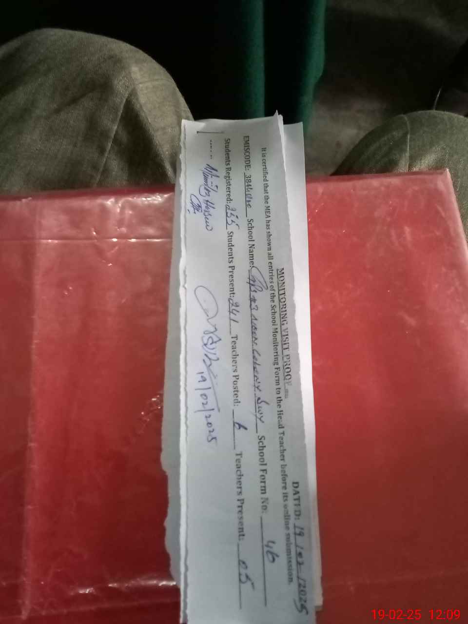 | Certified that this School was Inspected by the Undersigned MEA/DMO Today and the Information Stated Above is as Per Record. | |||||