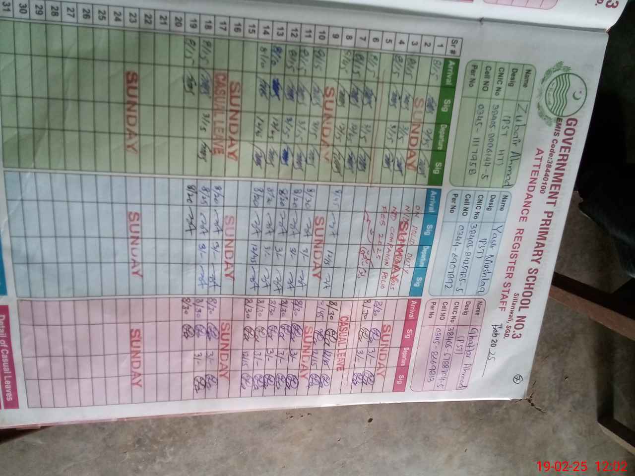 | EMIS Code: 38440100 | Name of School: GPS NO. 3 NOON COLONY SILLANWALI | |||