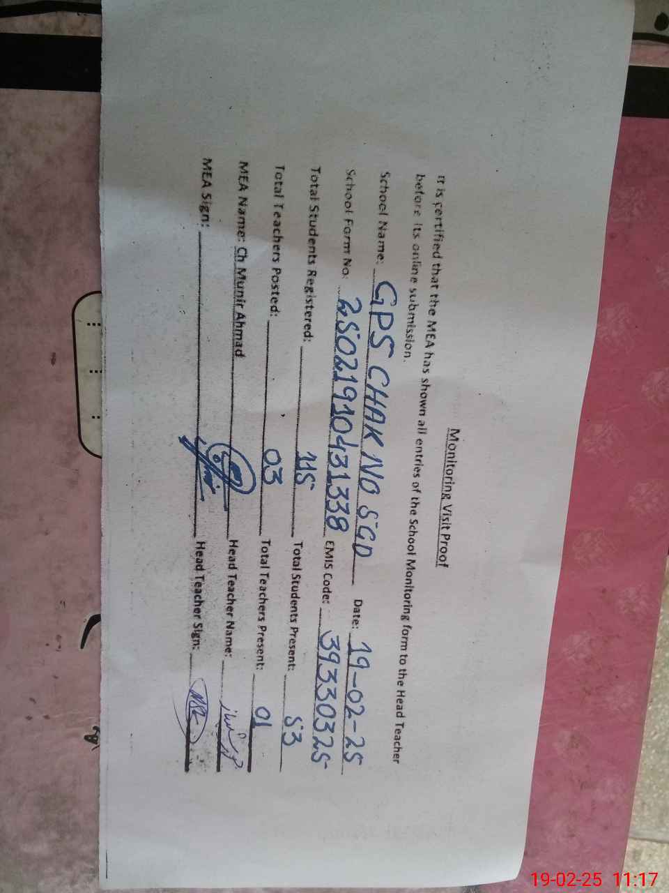 | EMIS Code: 39330325 | Name of School: GPS CHAK NO 5/GD | |||