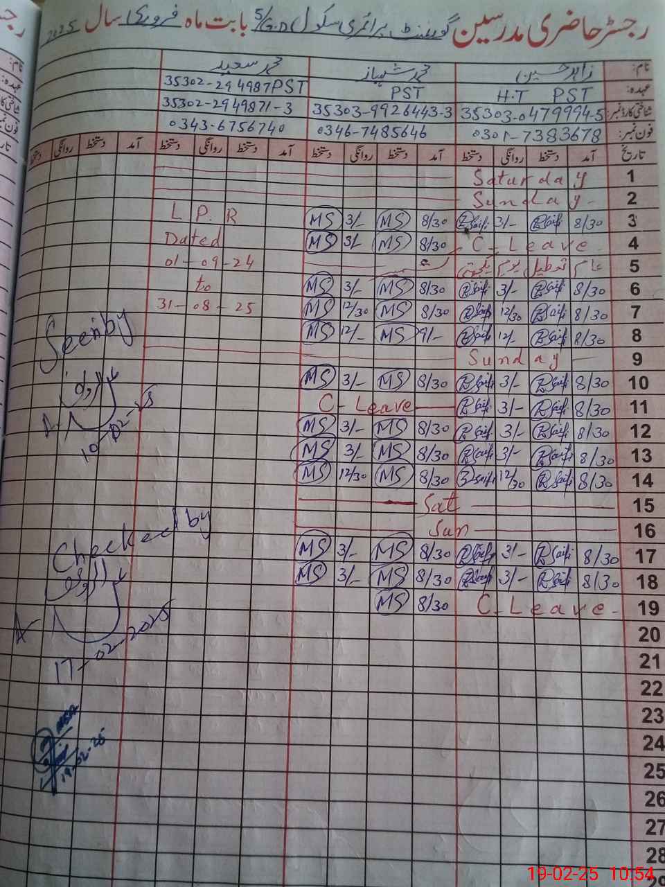 | Name: Mu**** Im**** Designation: (School Headmaster's/Headmistress's) PTC/JV Phone/Cell Number: 03**** |