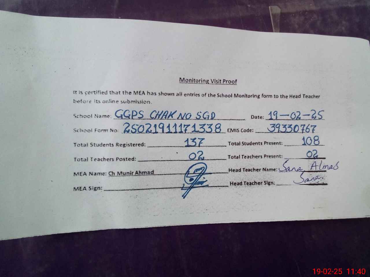 | EMIS Code: 39330767 | Name of School: GGPS CHAK NO. 5/G.D | |||