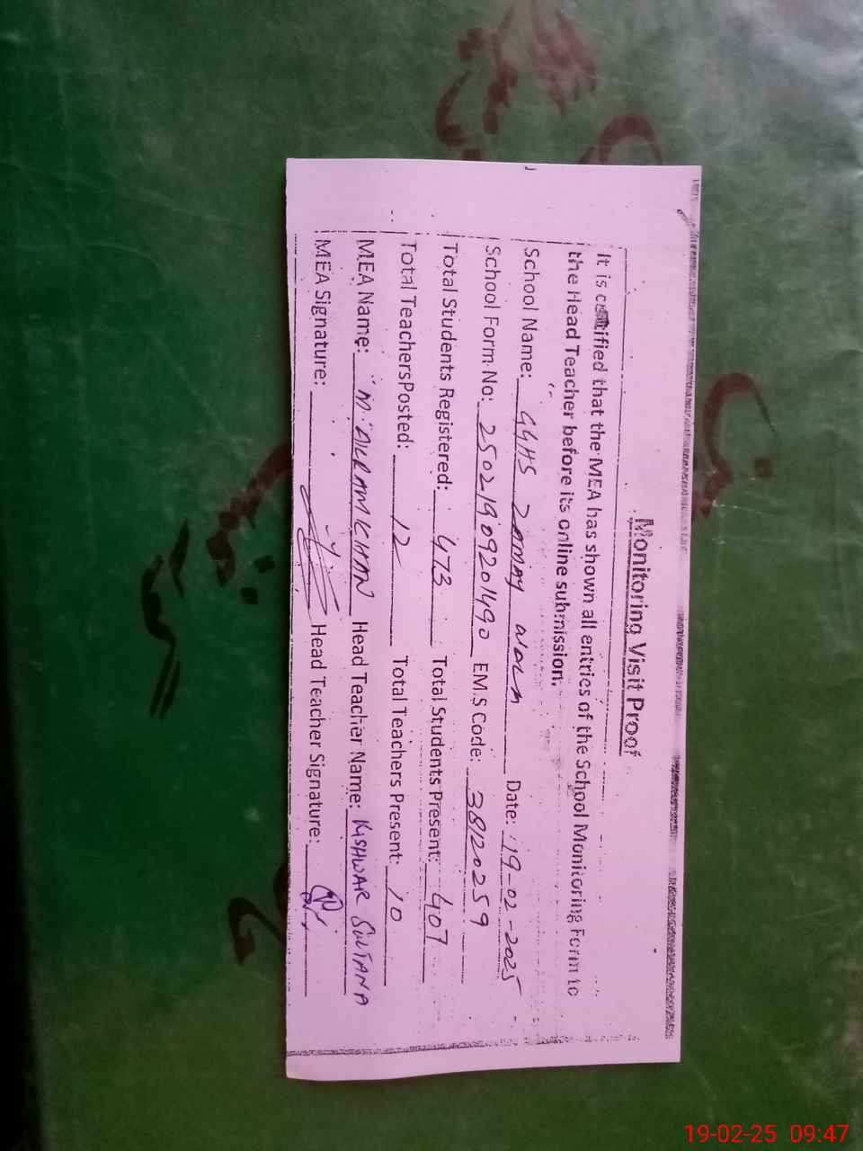 | Certified that this School was Inspected by the Undersigned MEA/DMO Today and the Information Stated Above is as Per Record. | |||||
