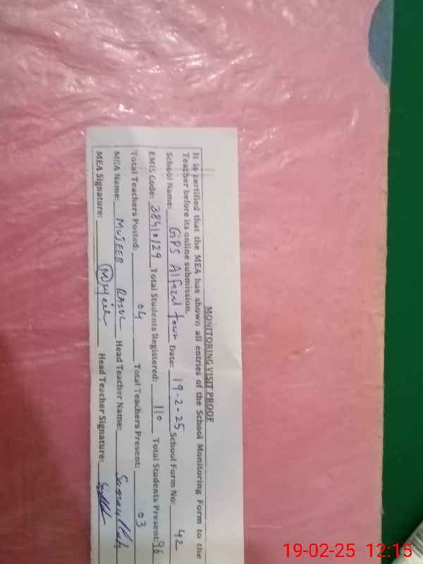| EMIS Code: 38410129 | Name of School: GPS MADRISA TUL ISLAMIA AL-FAZAL TOWN BHALWAL | |||