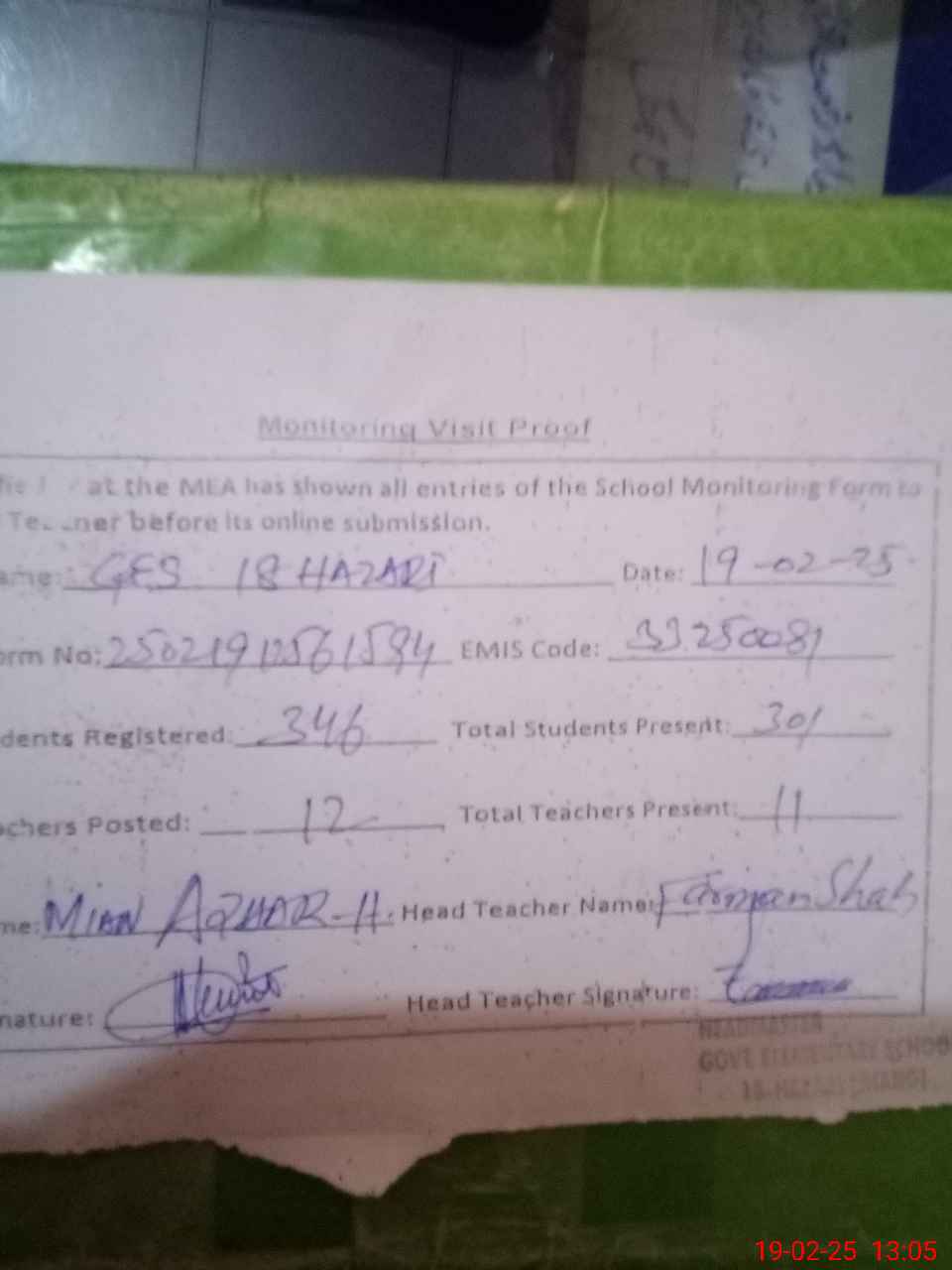 | EMIS Code: 33250081 | Name of School: GES 18-HAZARI | |||