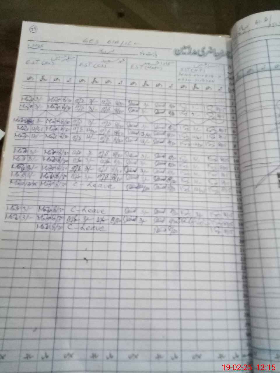 | Leave | Duty | Absent | Maternity | Medical | Ex- Pak |