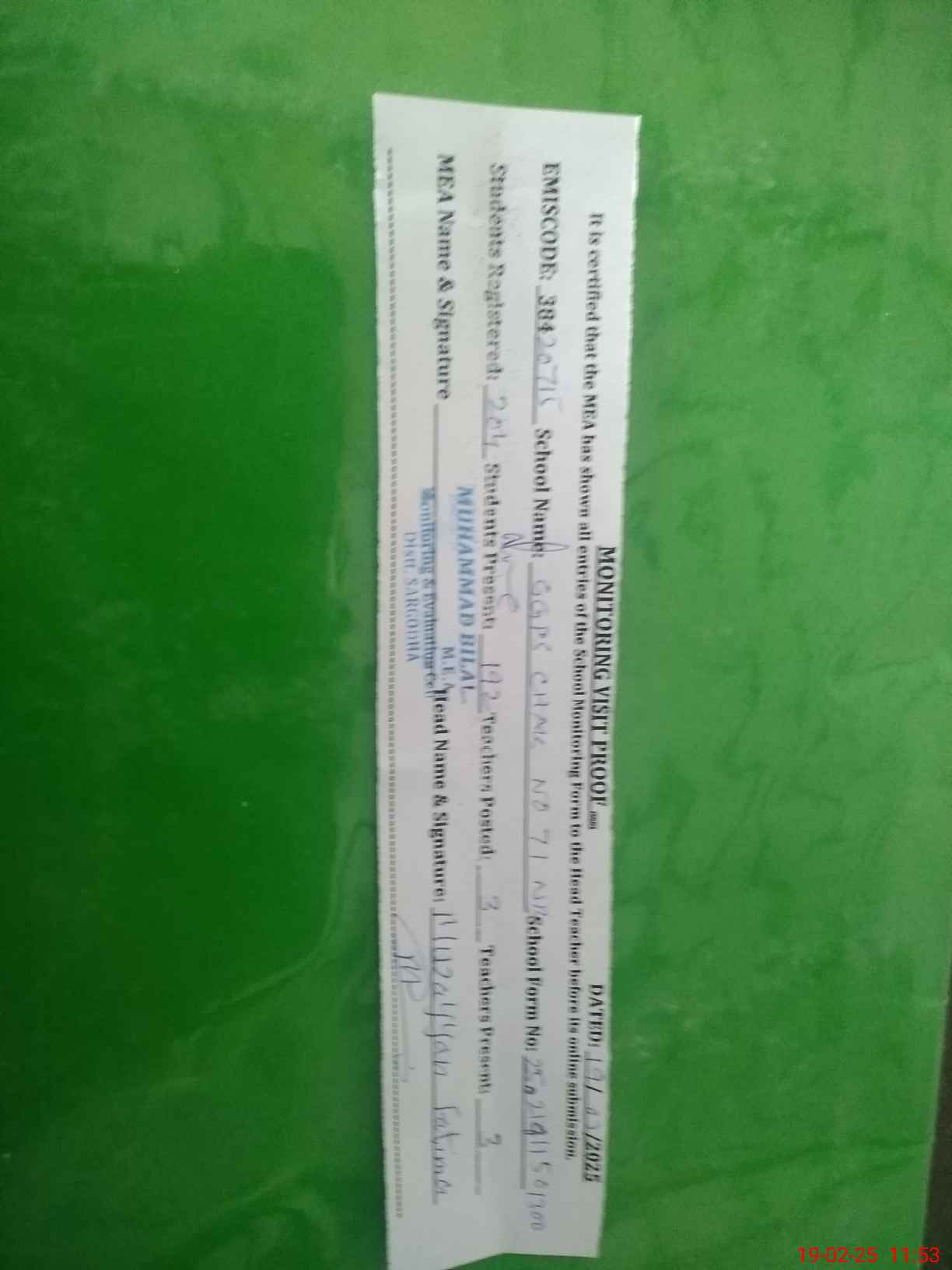 | EMIS Code: 38420715 | Name of School: GGPS CHAK NO.70 NB | |||