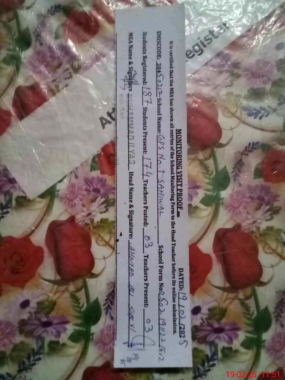 | EMIS Code: 38450212 | Name of School: GPS NO.1 SAHIWAL | |||