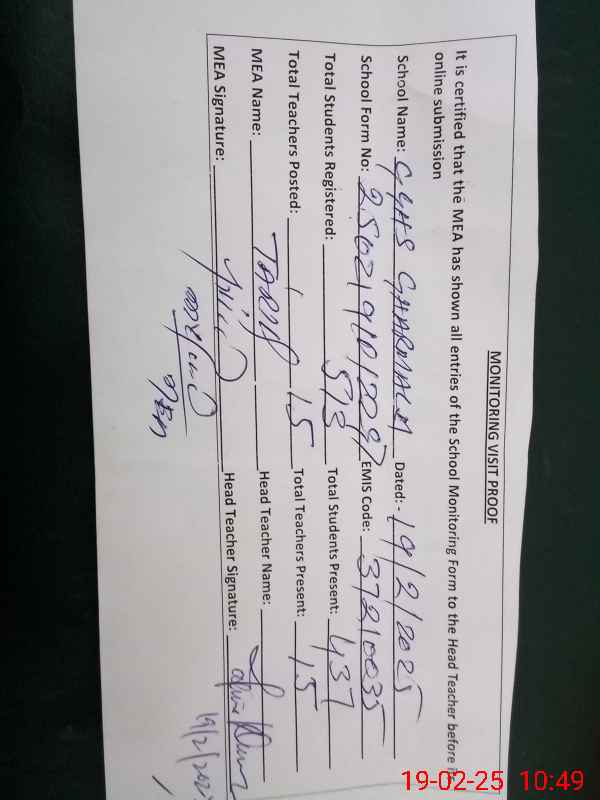 | EMIS Code: 37210035 | Name of School: GGHS GHARMALA | |||
