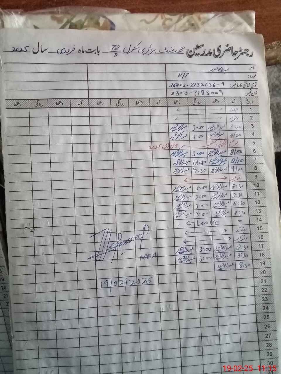 | Name: AB**** WA**** Designation: (School Headmaster's/Headmistress's) PST Phone/Cell Number: 03**** |