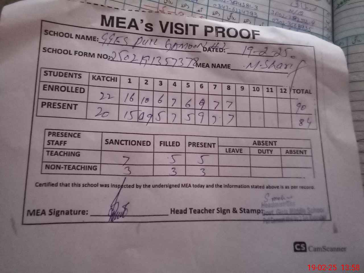 | EMIS Code: 36410633 | Name of School: GGES PUL GAMOON WALI NO. 2 | |||