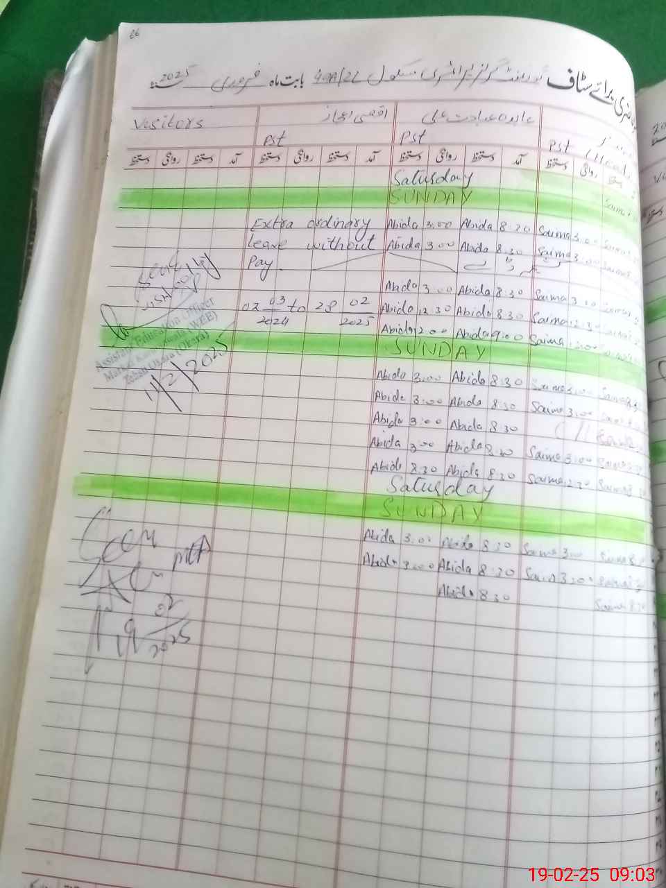 | Leave | Duty | Absent | Maternity | Medical | Ex- Pak |