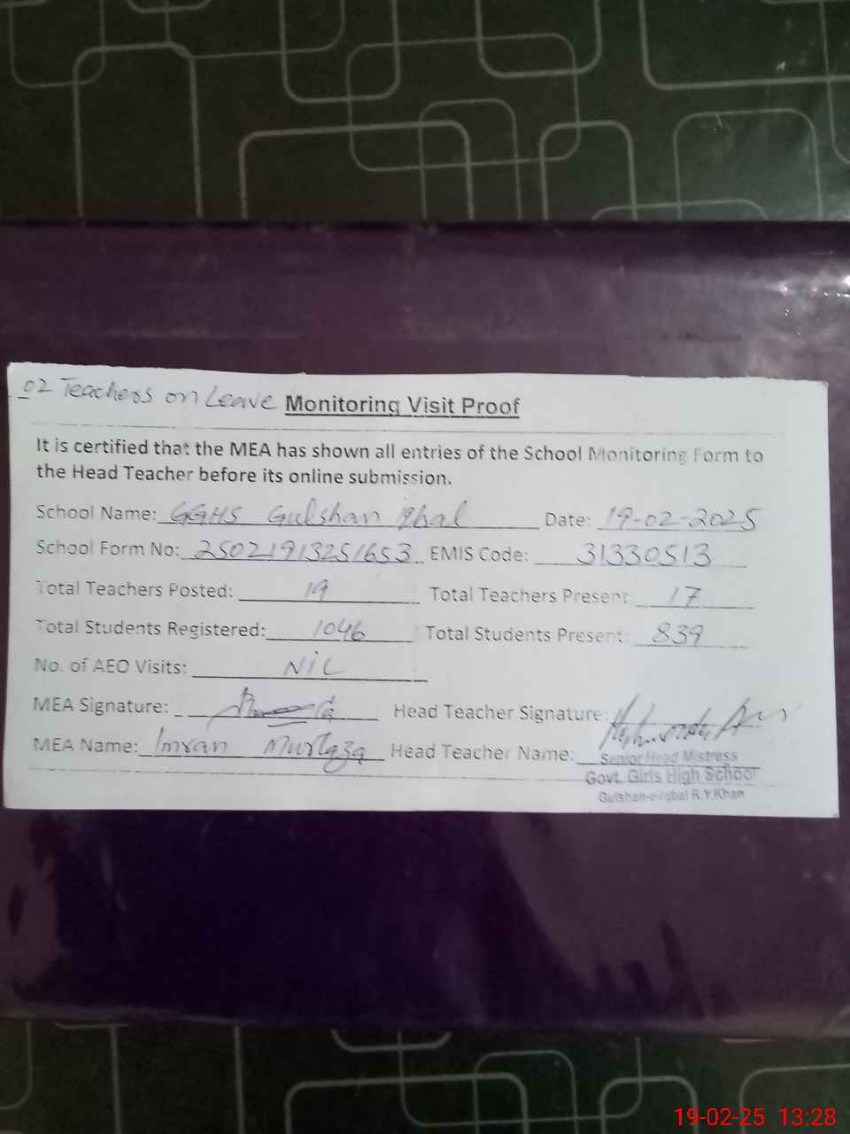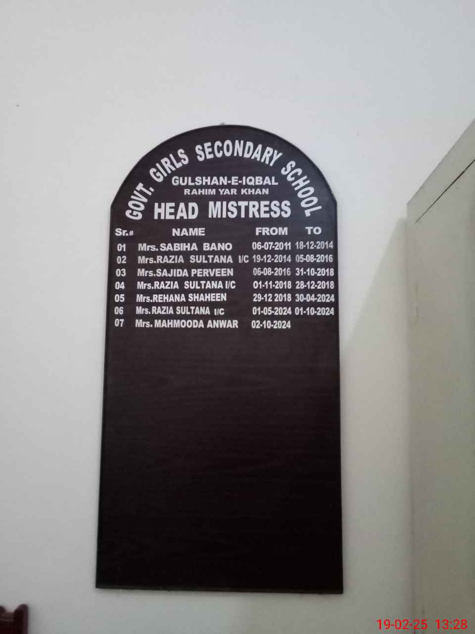 | EMIS Code: 31330513 | Name of School: GGHS GULSHAN IQBAL | |||