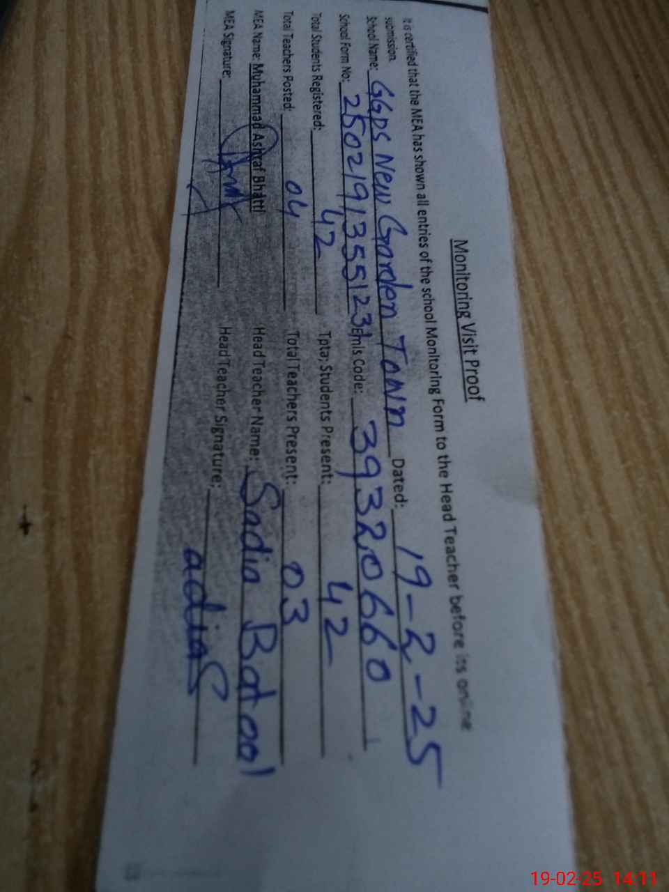 | EMIS Code: 39320660 | Name of School: GGPS NEW GARDEN TOWN OKARA | |||
